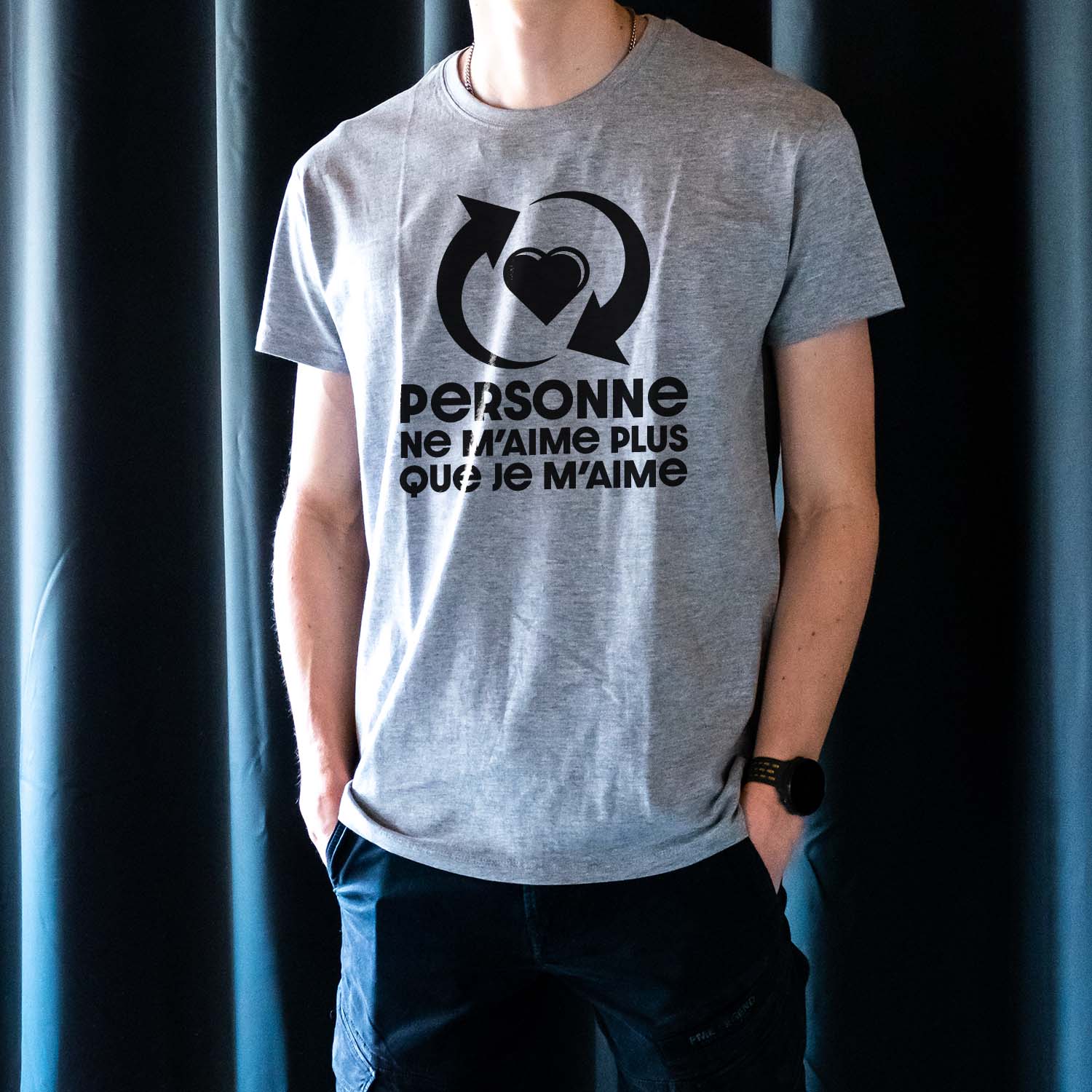Ce t-shirt est parfait pour les célibataires qui aiment s’affirmer avec style. Avec son message drôle et décalé, « Personne ne m’aime plus que moi », il attire l’attention et suscite la conversation. La coupe classique et le tissu doux et confortable assurent une excellente expérience de port. Disponible en plusieurs tailles, vous pouvez choisir celui qui vous convient le mieux.